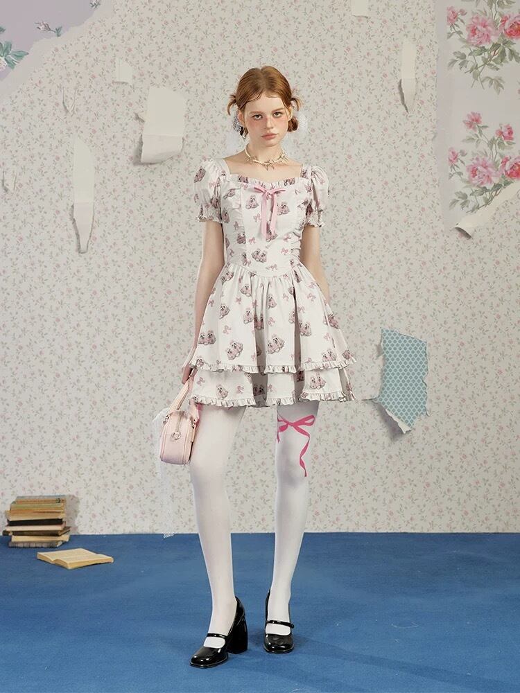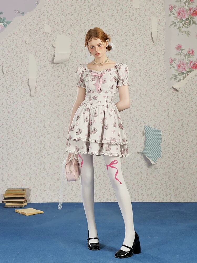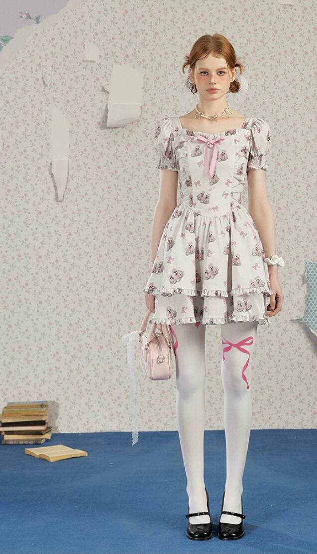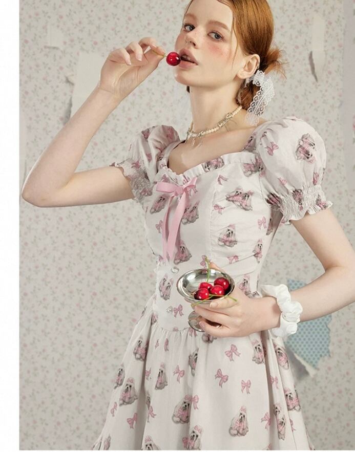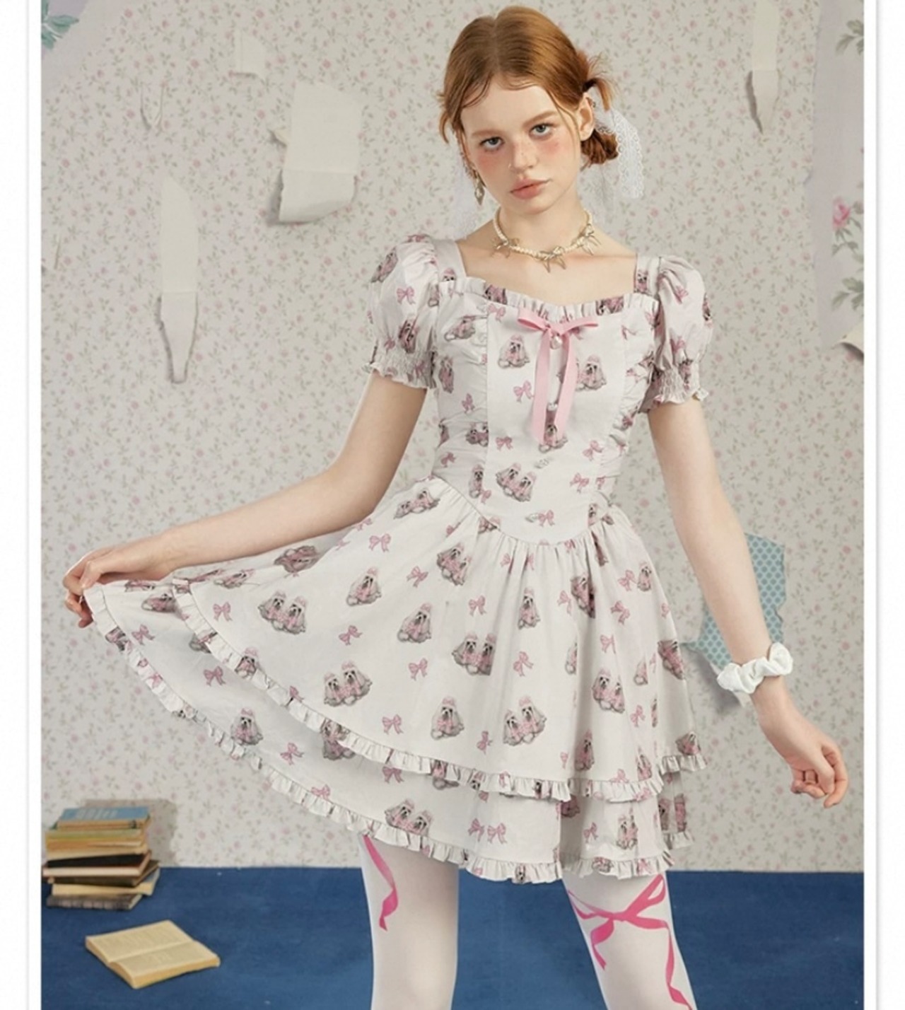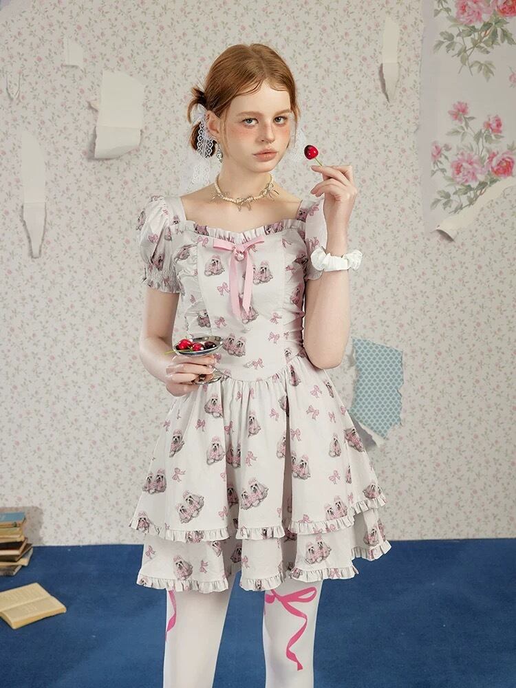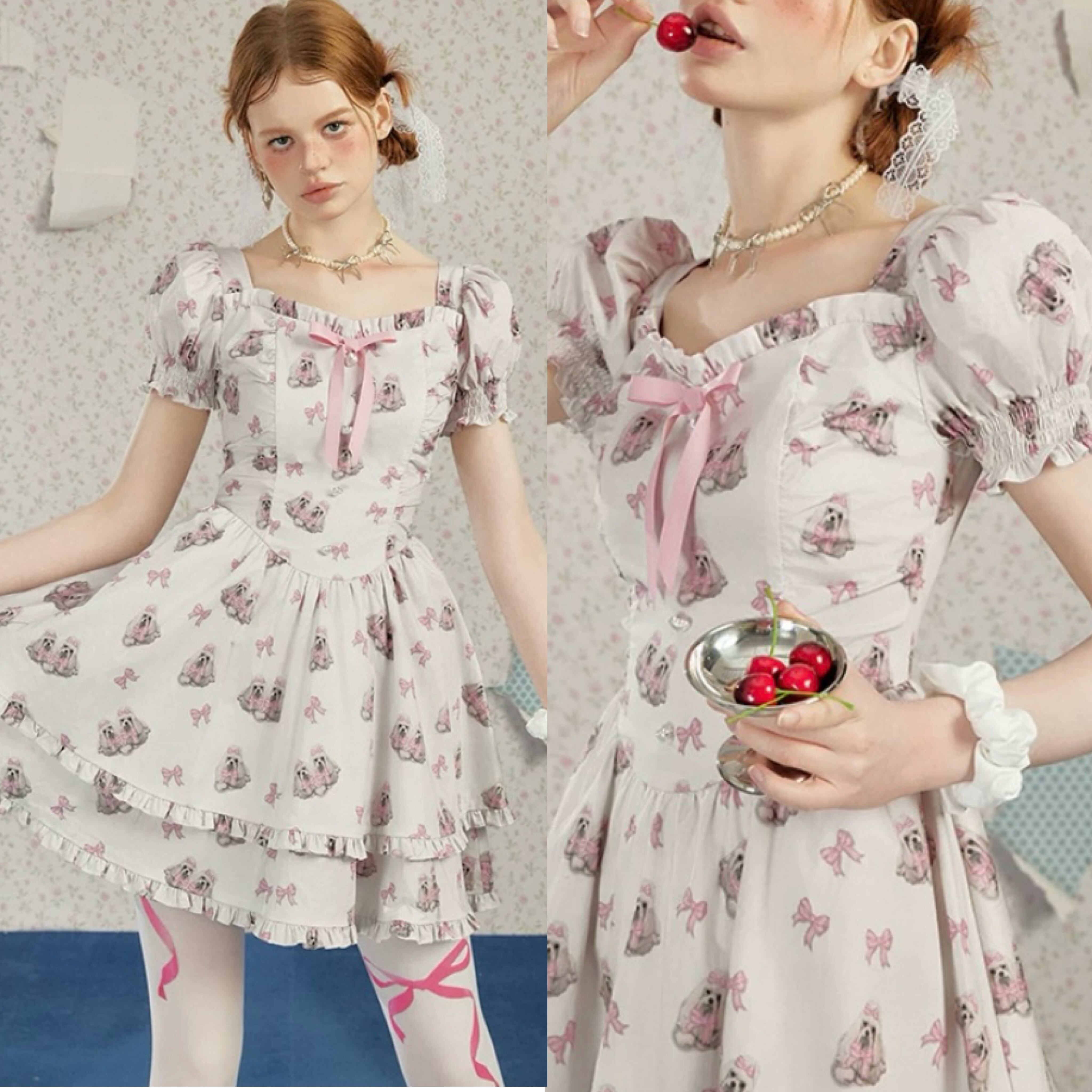 フレアスカート、ガーリー 姫、かわいい ちゃうちゃう 原宿、犬、ペット ヨークシャーテリア ピンク リボン グレー