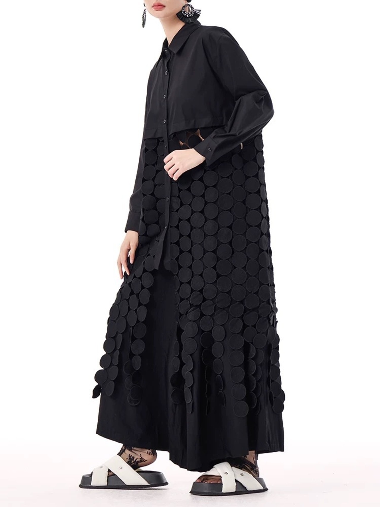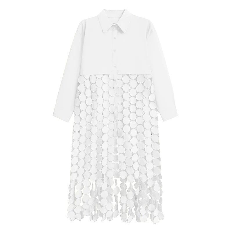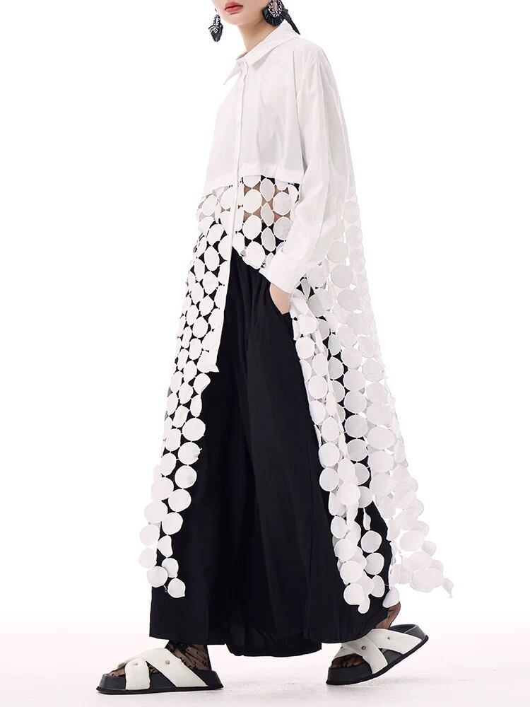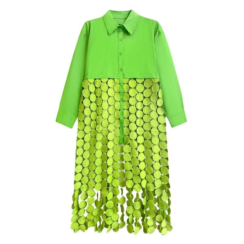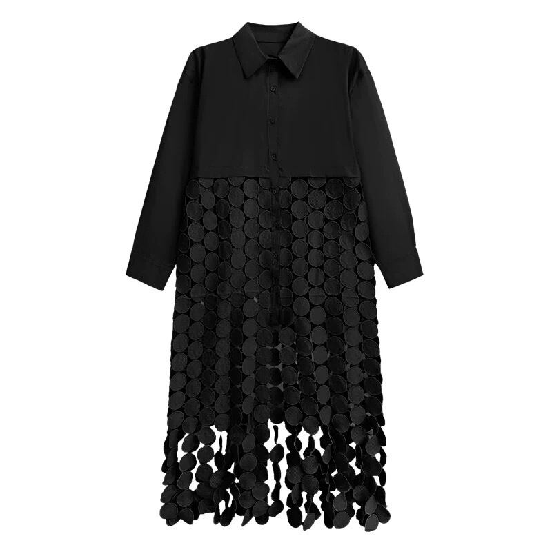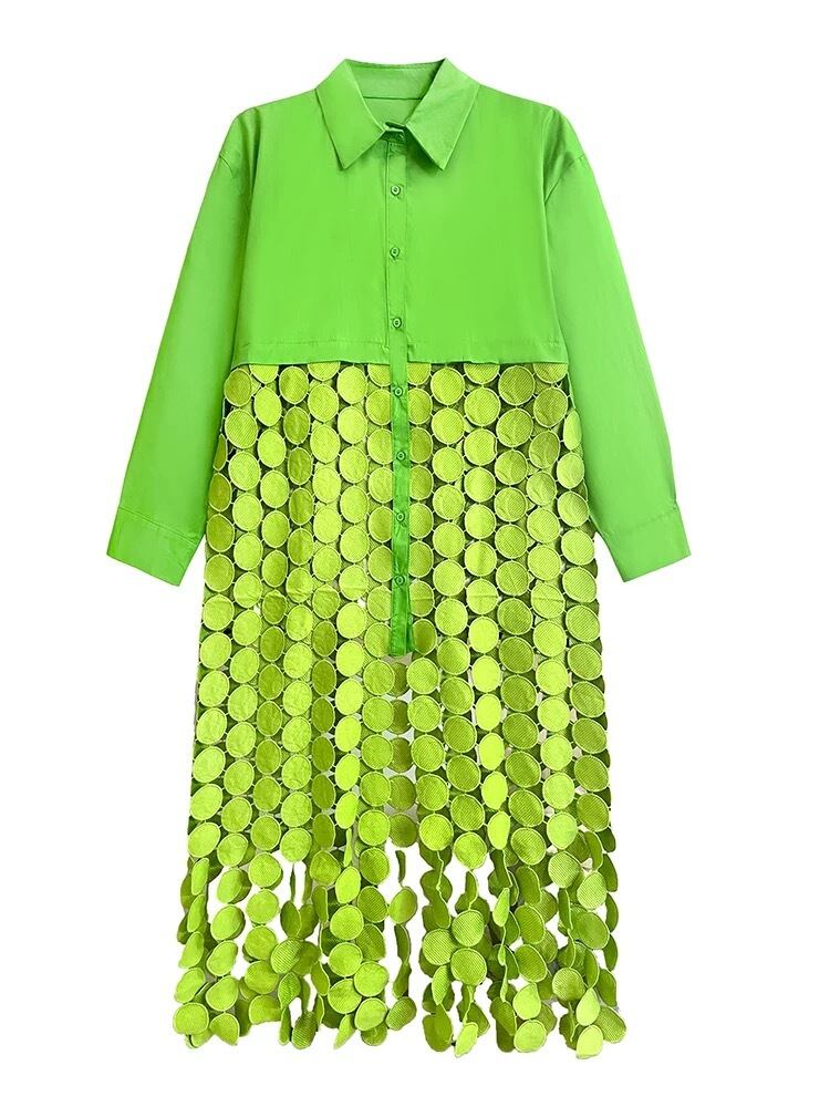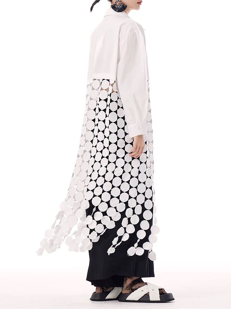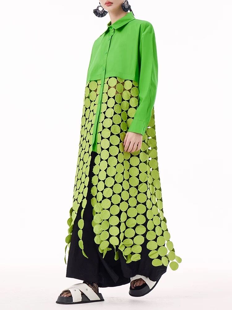 黒 白 緑 ロング シャツ、ブラウス、あみあみ 水玉 ドット