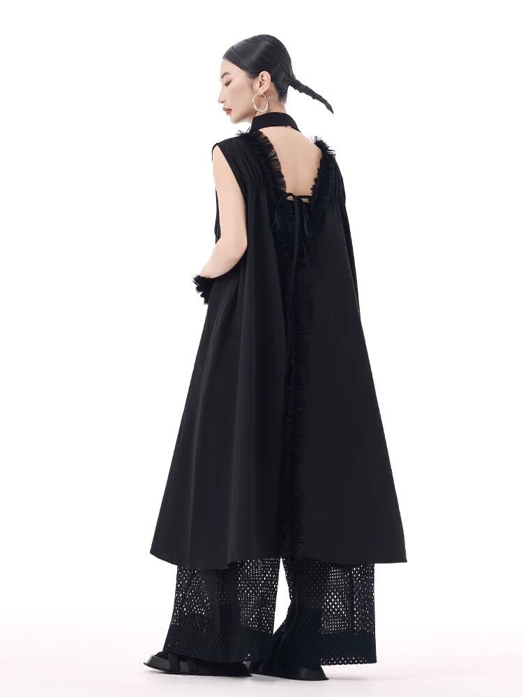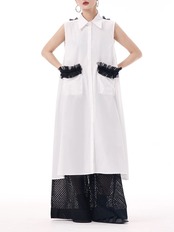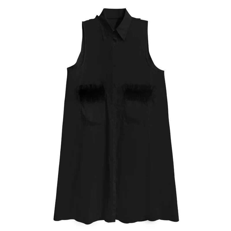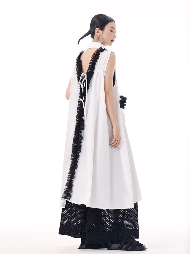 白 黒 ブラウス Vネック、フリル リボン、カジュアル ワンピース、ブラウス、トップス、アウター、カーディガン、まつげ、つけまつげ、ポケット 背中、セクシー リボン
