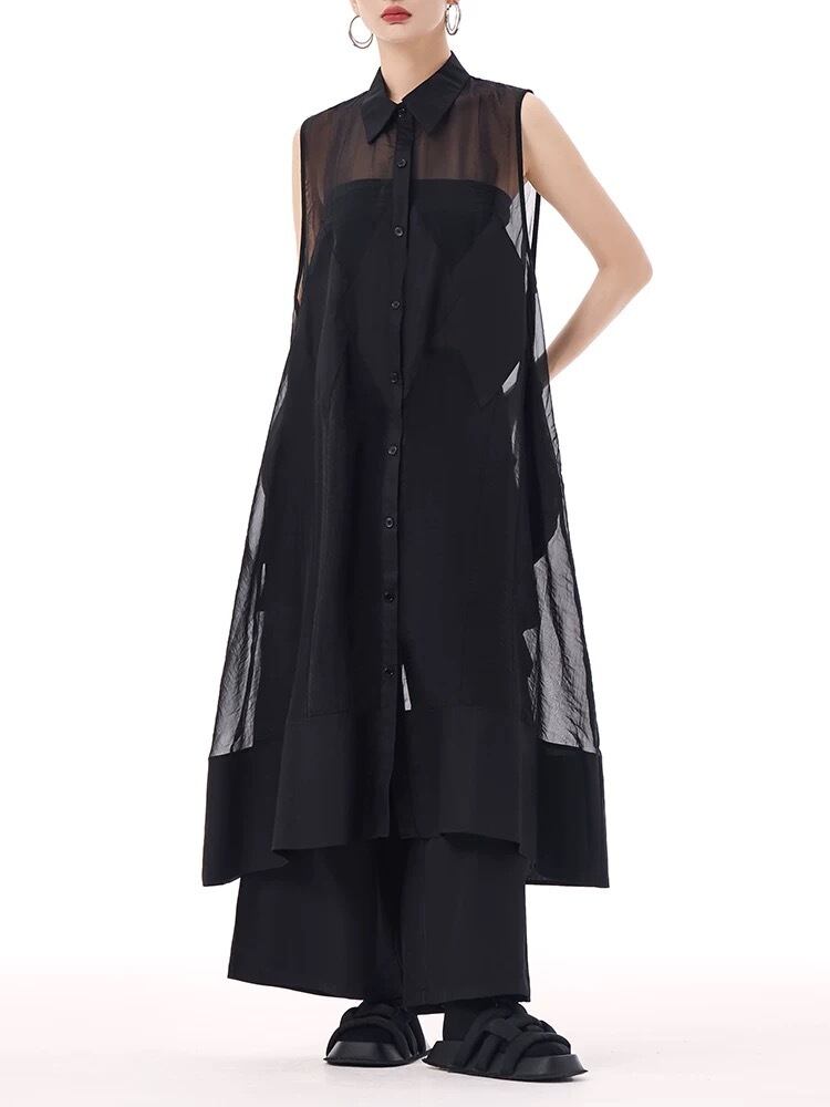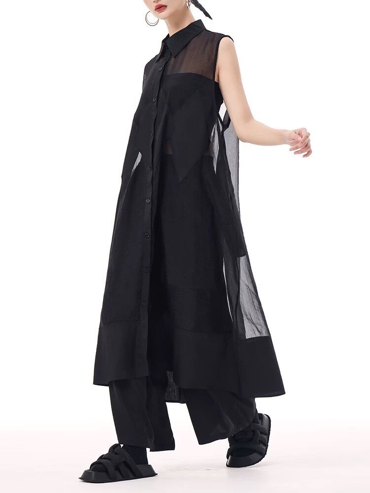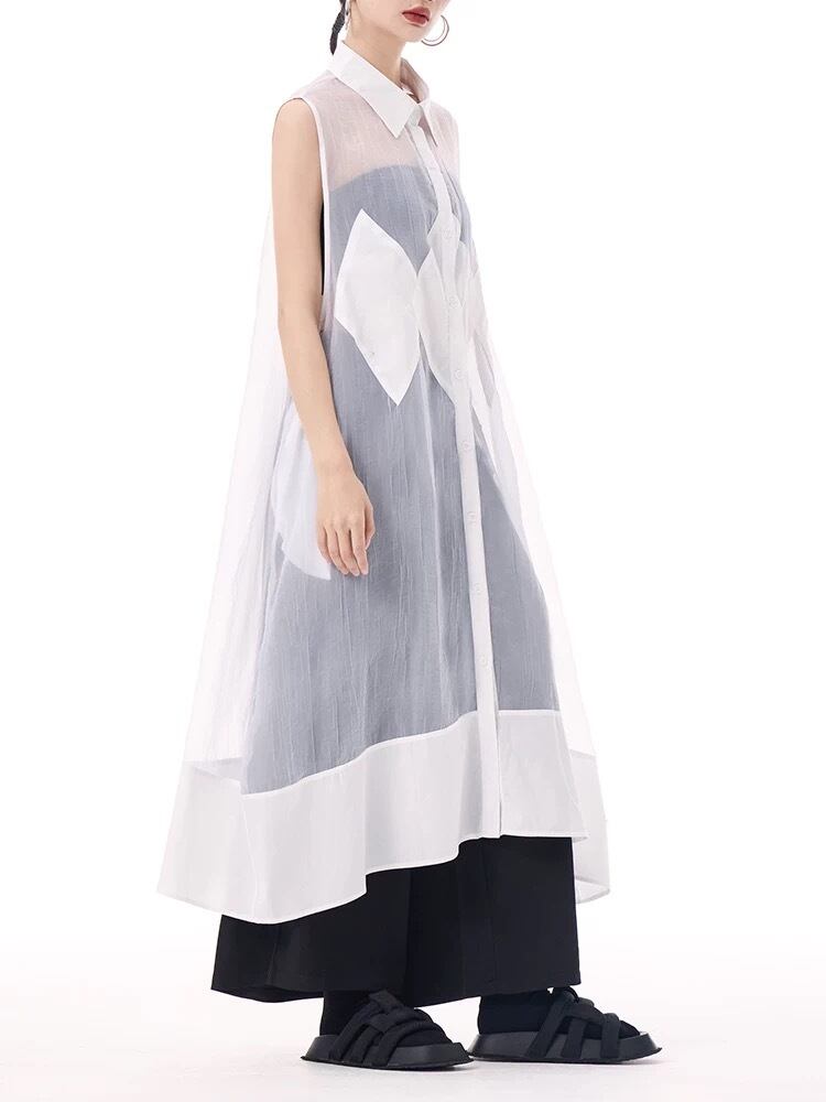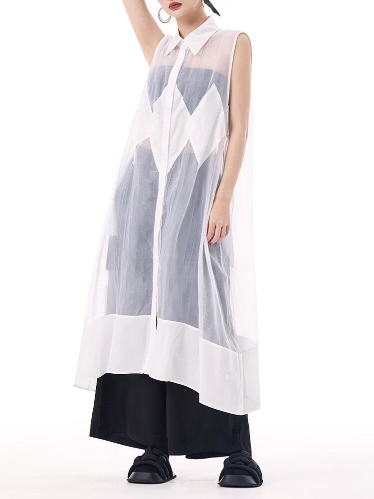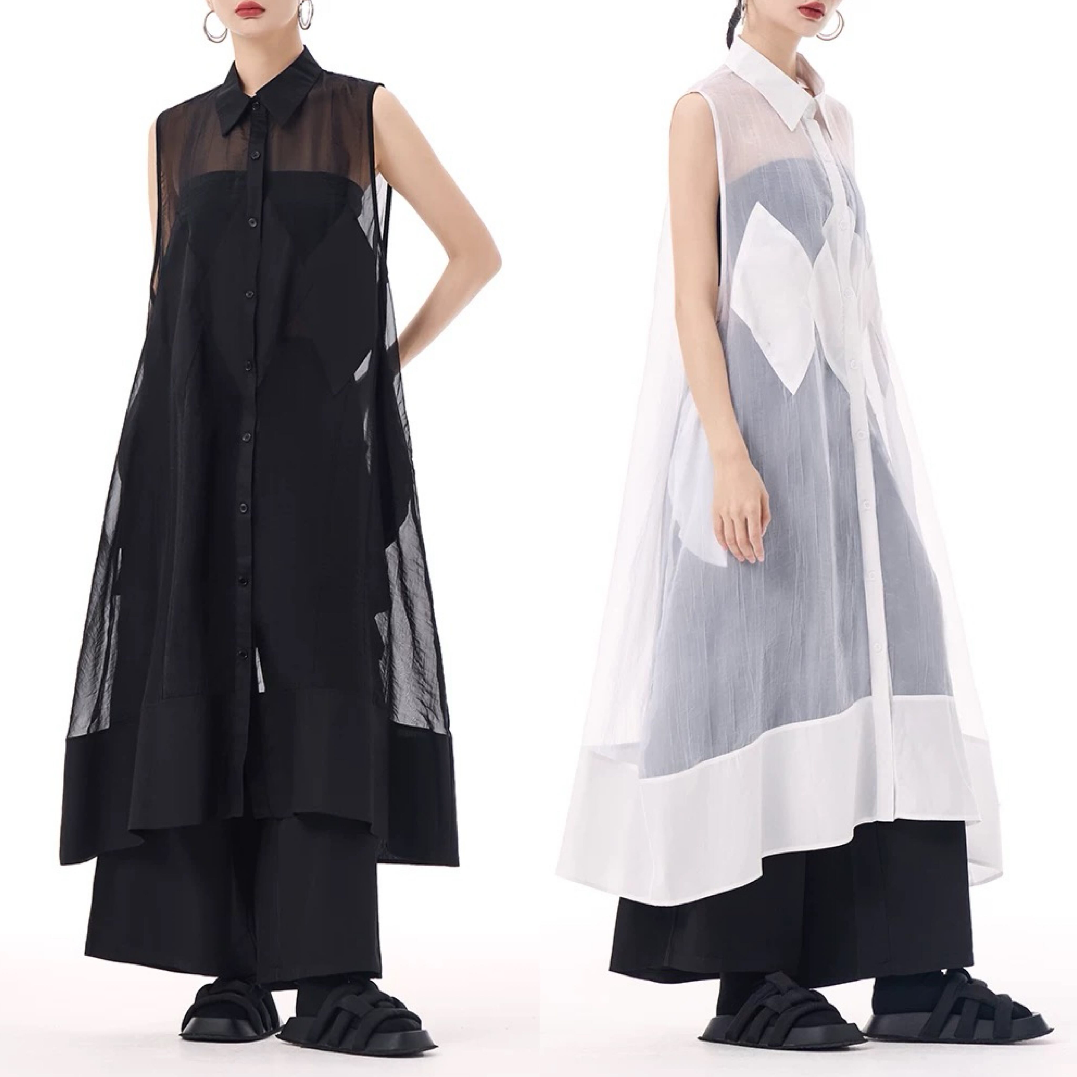 白 黒 シースルー ブラウス、トップス ワンピース、セクシー スケルトン