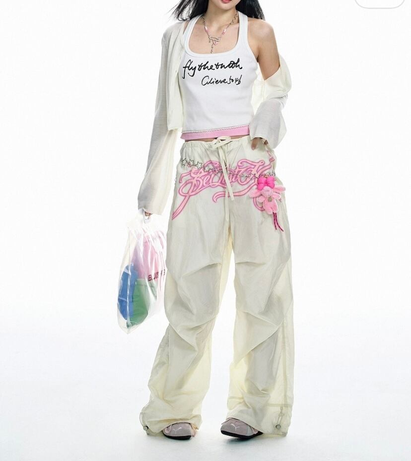 パンツ、ボトムス、ピンク、黒、白、スウェット、ジャージ、太め、ブラン、スクラブ、原宿、ガーリー ヒップホップ
