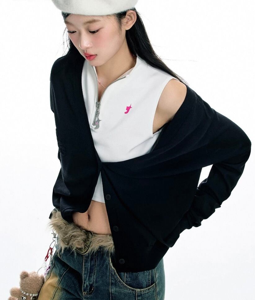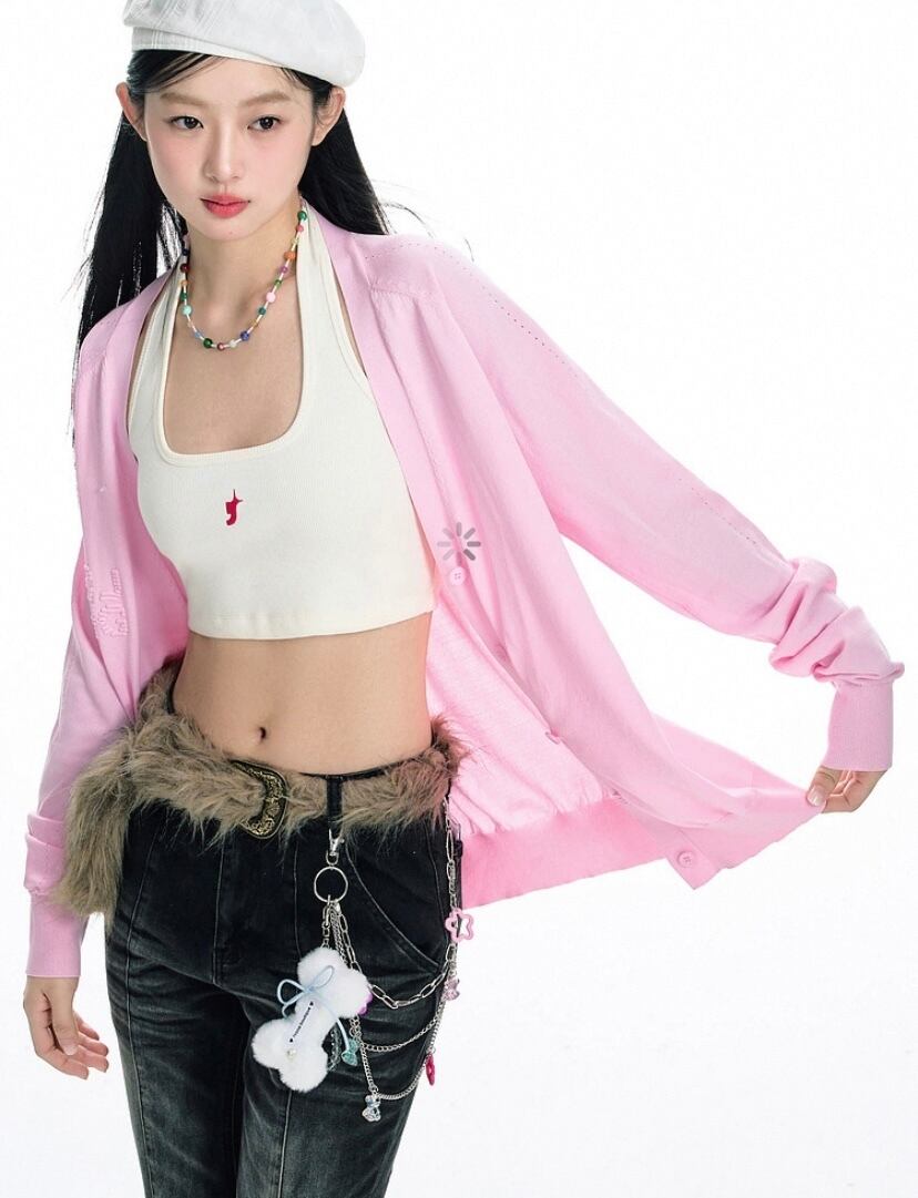 黒、ピンク、白、ネイビー、カーディガン、セーター、トップス、アウター、ジャケット、セーター、かわいい シンプル、カジュアル ブラウス