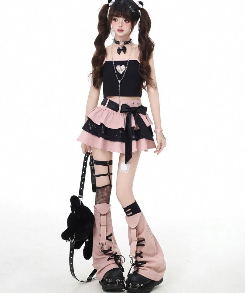 ボトムス ミニスカート 黒 姫 リボン ピンク 赤 チェック ギンガムチェック ミニスカート ボトムス かわいい 姫 ロリータ ガーリー 原宿