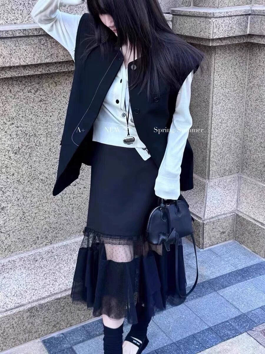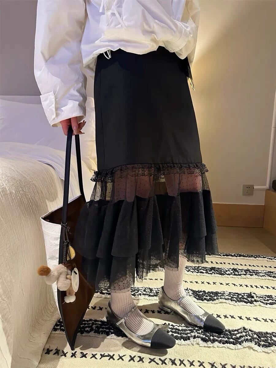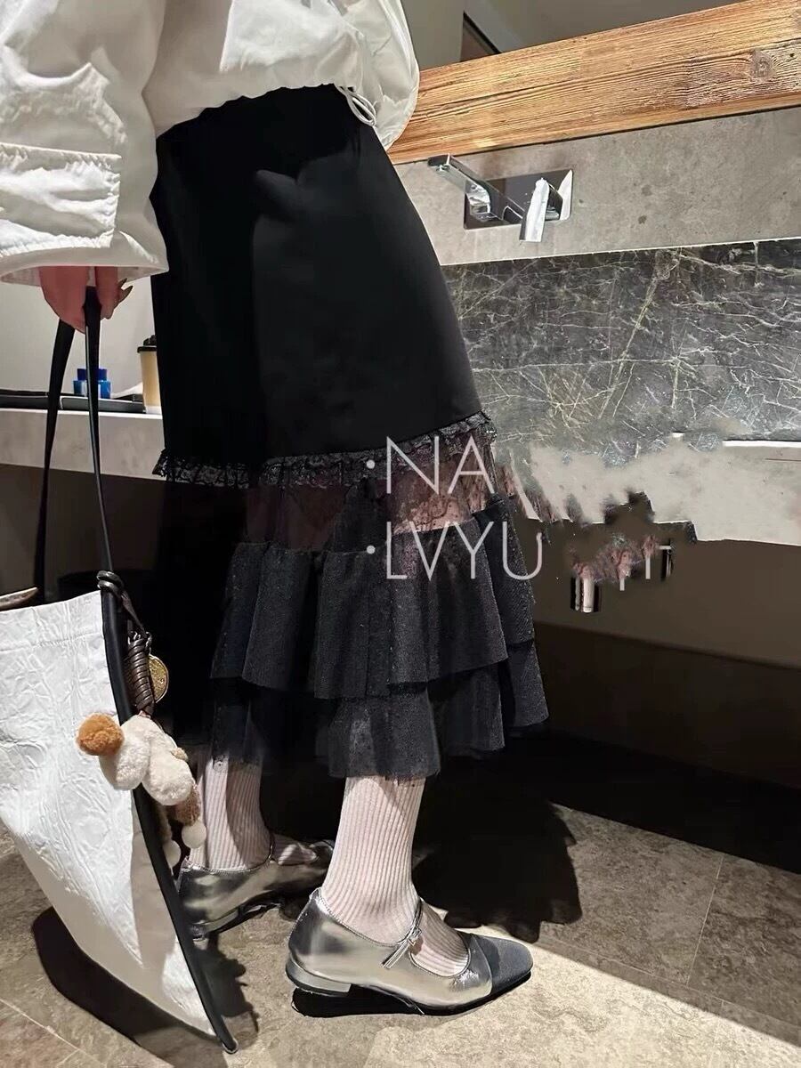 ★サイズ 黒 シンプル ガーリー、可愛い XL ボトムス、マキシ、スカート、フリル、シースルー 可愛い。シンプル、原宿、古着、渋谷 エレガント 合わせやすい。