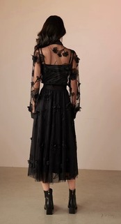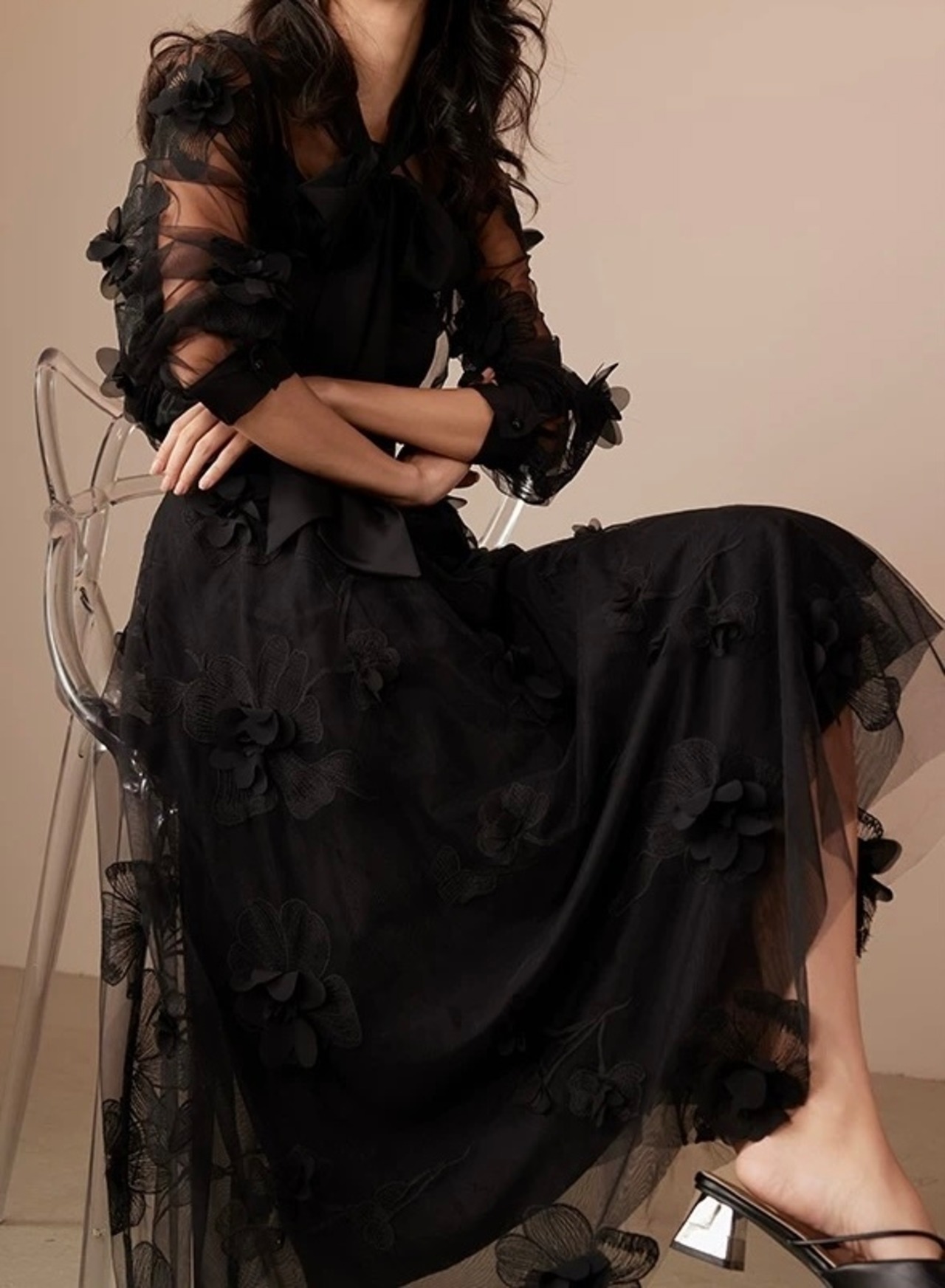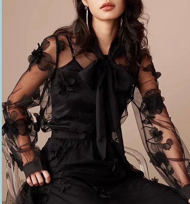 黒 フラワー デコレーション、キャミソール、銀座、青山 表参道シースルー、リボン、トップス、ブラウス、シャツ、エレガント ゴージャス、マダム、エレガント、黒、ブラック、フラワー、セクシー、キャミソール、ブラウス、トップス
